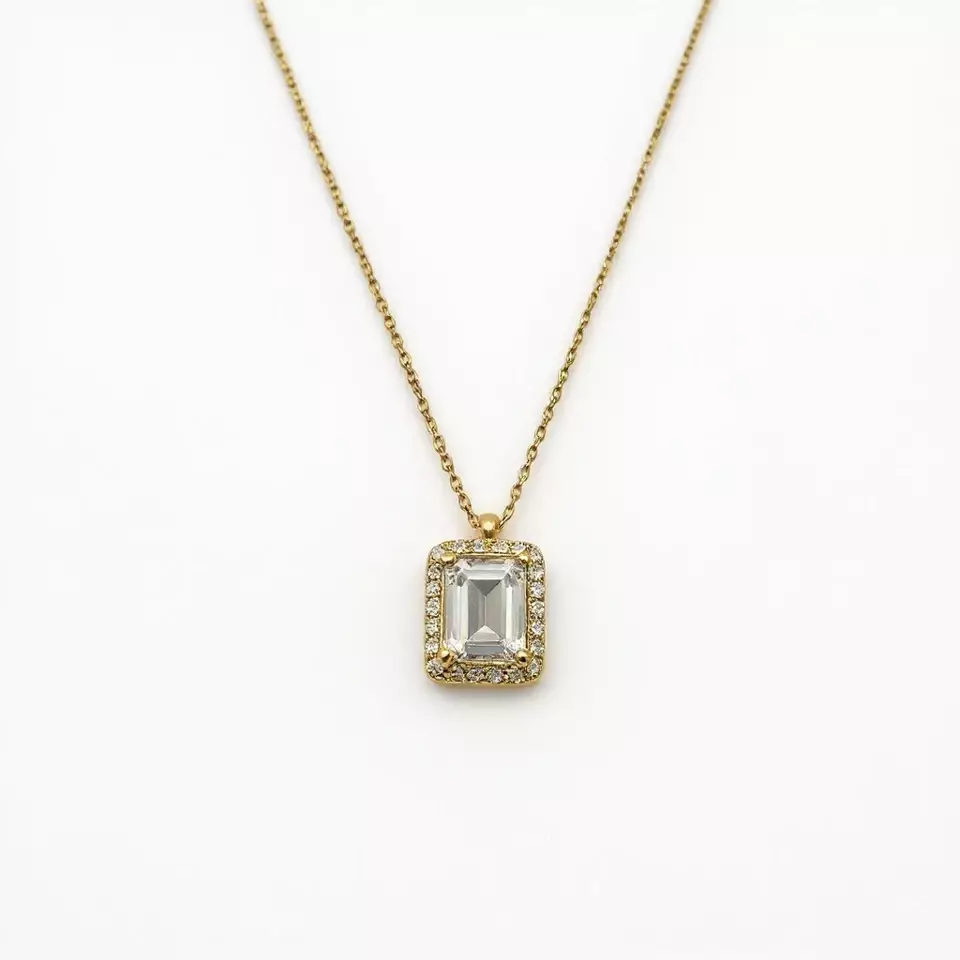 Baget kesim taşın ışıltısını altın çerçeveyle buluşturan bu kolye, hem günlük hem de özel günler için şık bir seçimdir.