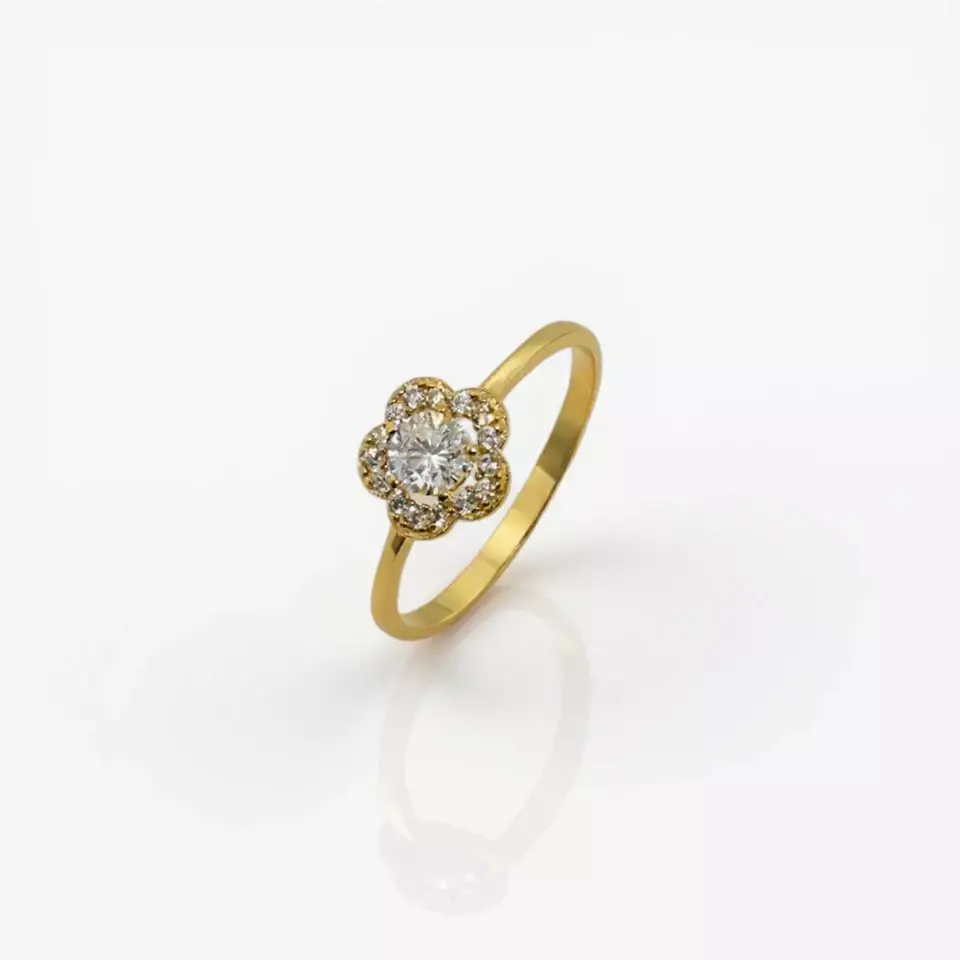 Doğanın zarafetinden ilham alan Çiçek Yüzük, merkezindeki parlak taş ve etrafını saran minik taşlarıyla göz alıcı bir denge sunar. Her çiçek gibi eşsiz, her parıltı gibi unutulmaz.