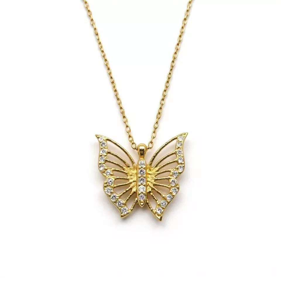 Özgürlüğün ve yeniden doğuşun sembolü... Taşlarla bezeli altın kelebek kolye, ışığı kanatlarında taşıyarak hem şıklığınızı hem de ruhunuzun özgün enerjisini yansıtır.