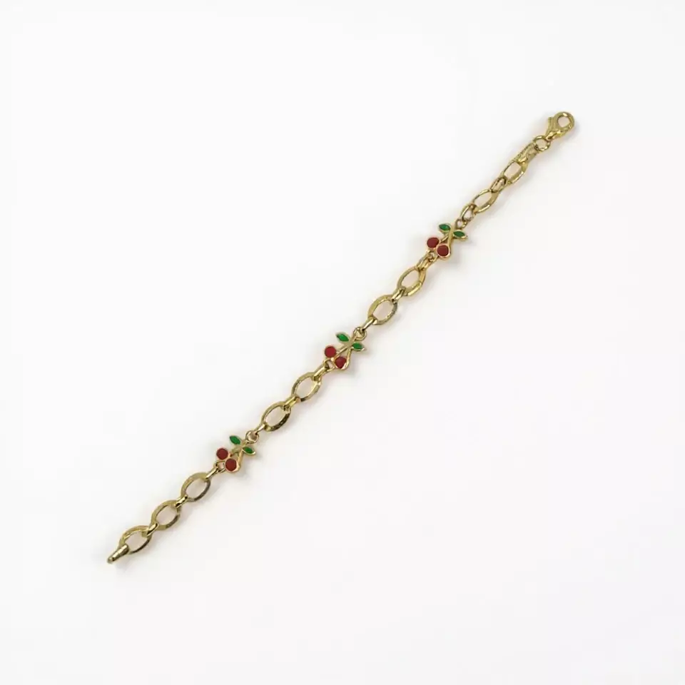 Minik bilekler için tasarlanan bu sevimli bileklik, kiraz detaylarıyla neşeyi ve enerjiyi yansıtır. Günlük kullanıma uygundur, her bakışta gülümsetir.